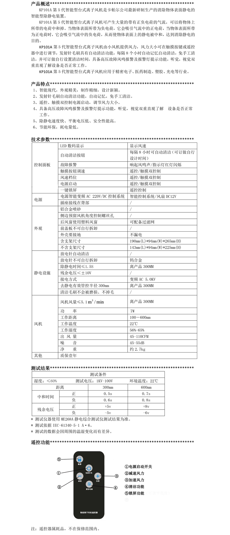 KP101A第五代智能型臺式離子風機